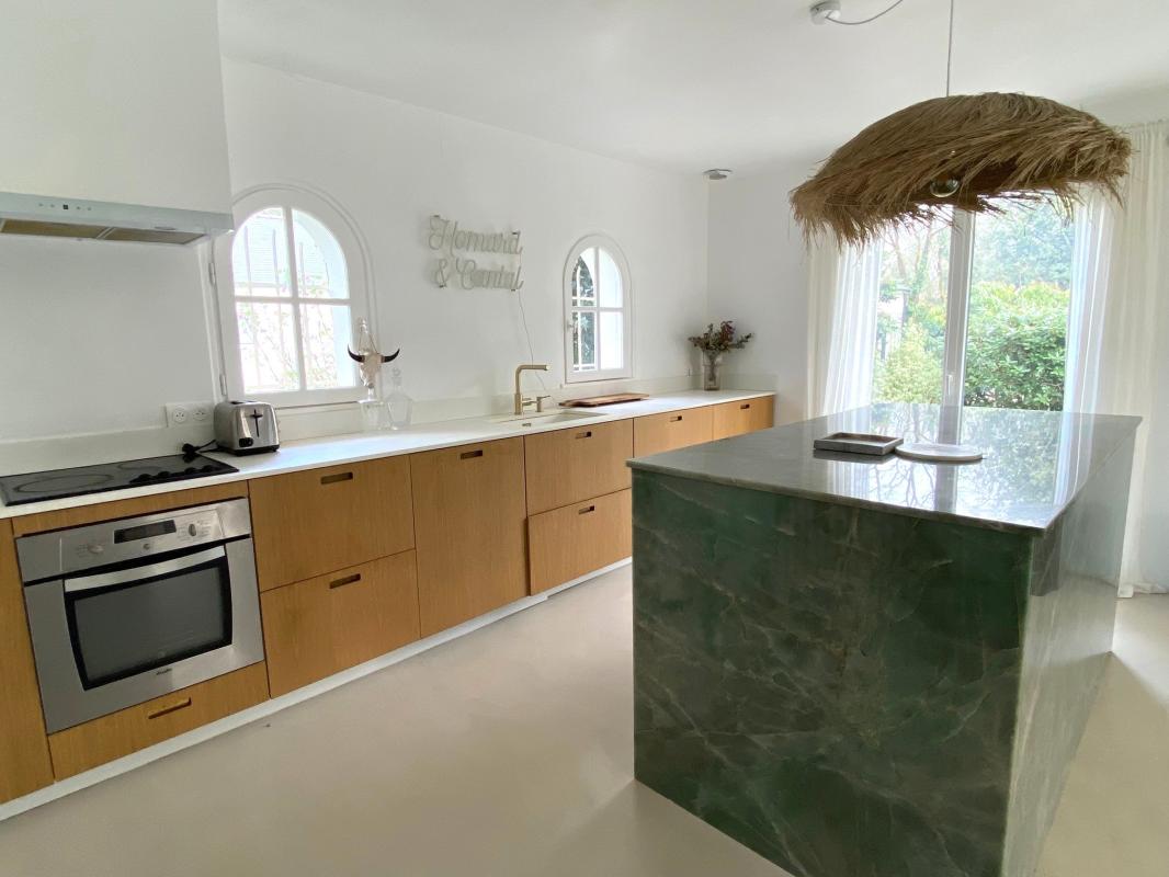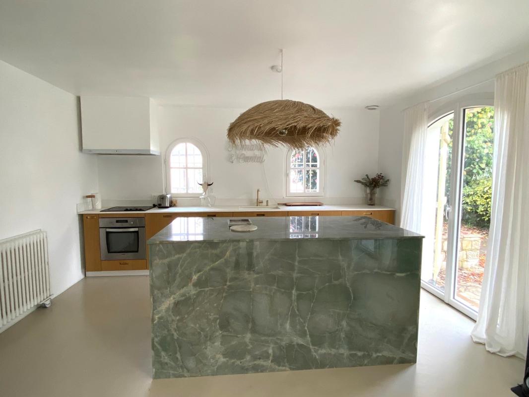 Entre Treillieres et Nantes, venez découvrir cette maison familiale de 135m2 joliment rénovée sur son terrain arboré de 3500m2. Vous y trouverez au rez de chaussée une entrée desservant un salon-séjour (55m2) baigné de lumière, avec cheminée et prolongée d’une belle cuisine aménagée avec ilot en quartzite, une arrière cuisine. A l’étage une mezzanine, trois chambres avec placards, salle de bains avec baignoire et douche, wc. En annexe deux bureaux (18m2 et 19m2), un atelier (26m2) un garage (25m2), un garage attenant et un préau (48m2).